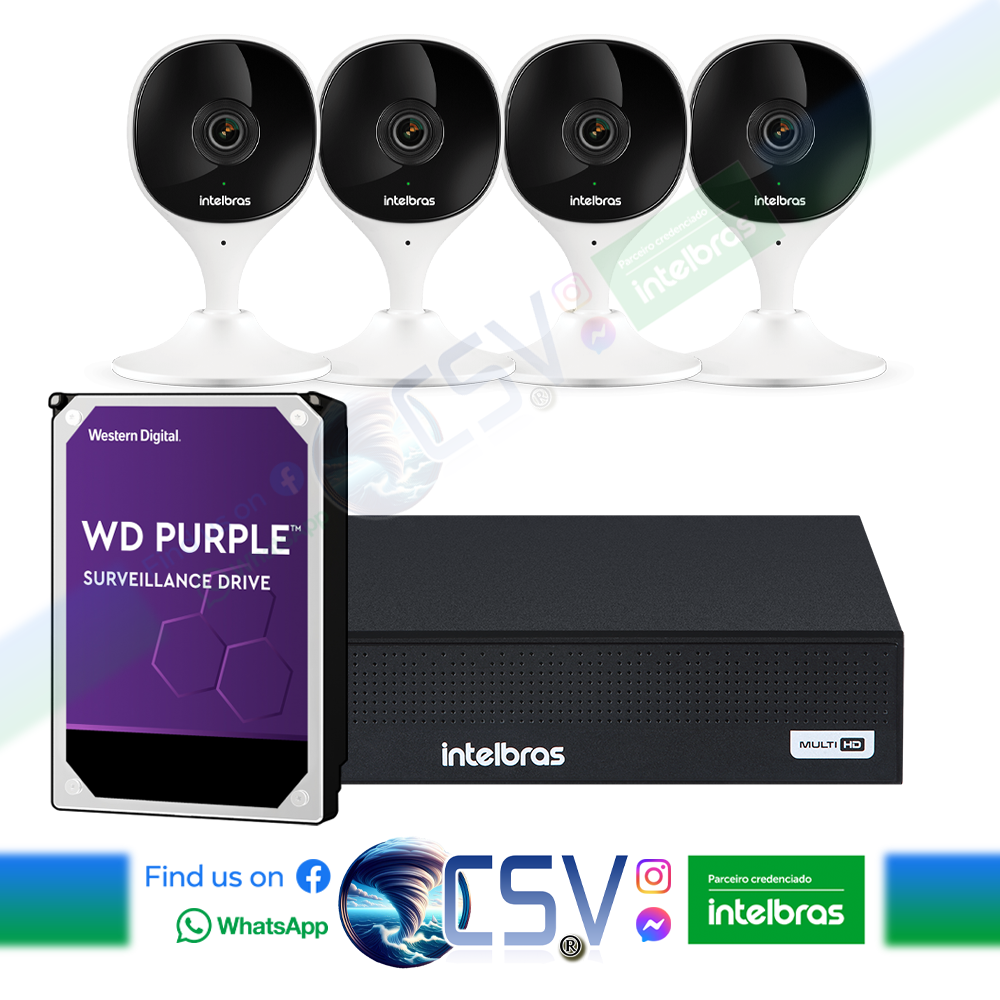 DVR Intelbras 3104 com HD WDPurple de 1 Tera + 4 Câmeras Intelbras IM3 WiFi Full-HD + Instalação*
