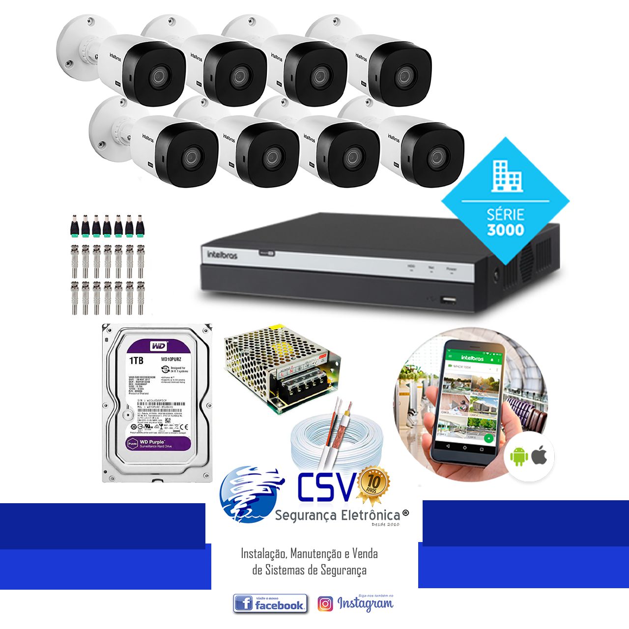 DVR Intelbras 3108 com HD WDPurple de 1 Tera + 8 Câmeras Intelbras VHL1220 Full-HD + Instalação*