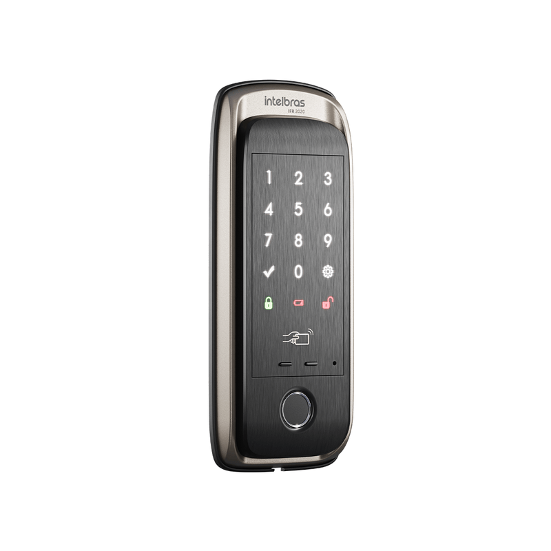 A Fechadura Digital Smart de Sobrepor Intelbras IFR 2020 com Biometria, pode ser aberta com senha numérica pelo teclado (até 4 senhas) ou através de biometria (até 100 Biometrias Digitais + 100 TAGs de Proximidade ).